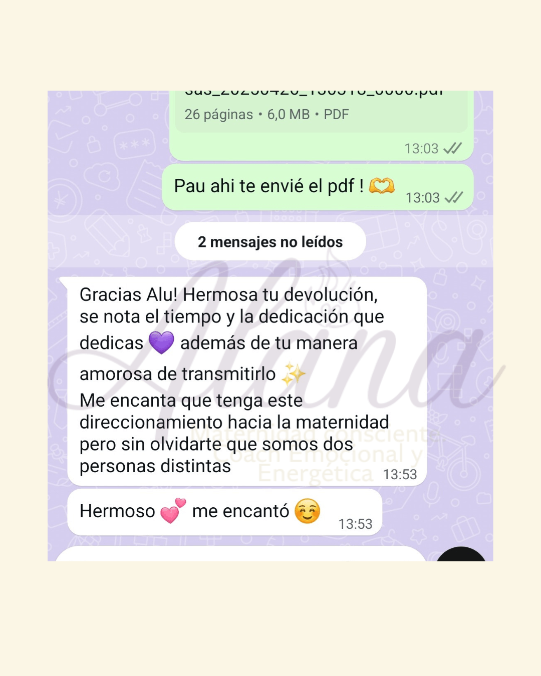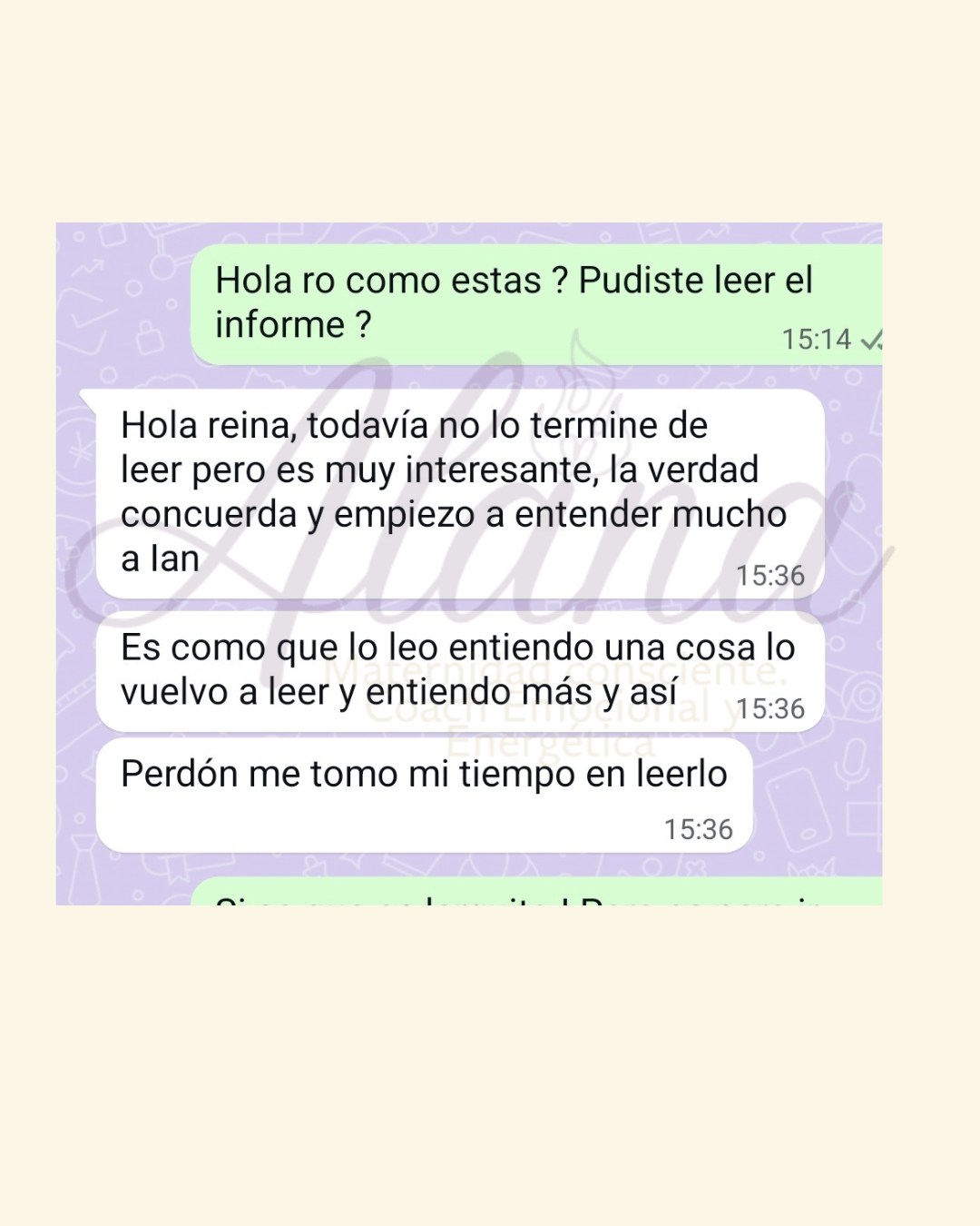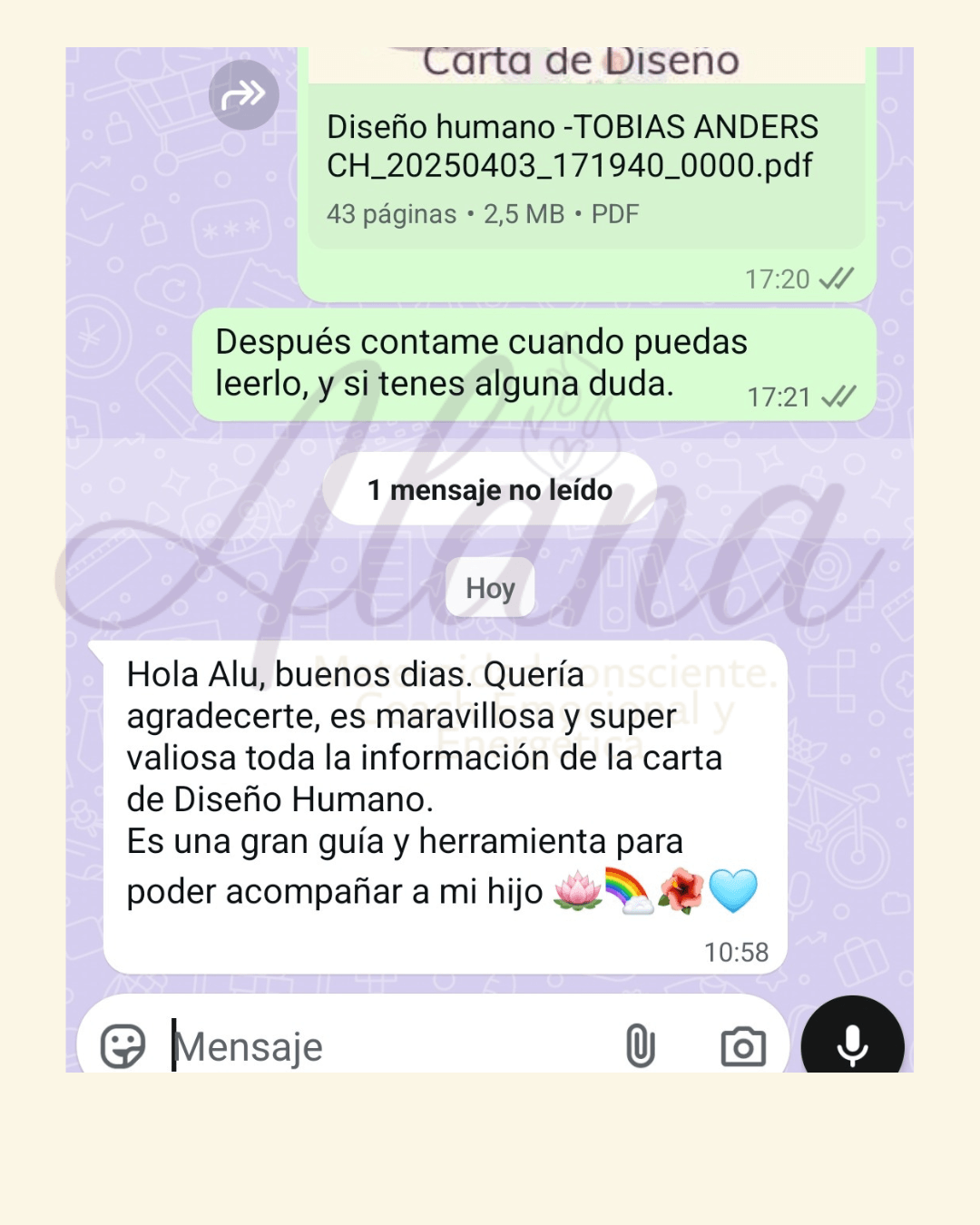 Entregable: Devolución a los 7/10 dias hábiles de contratada la sesión, con la guía aplicable sin tecnicismo para adultos + sugerencias prácticas cotidianas para que apliques en el día a día.